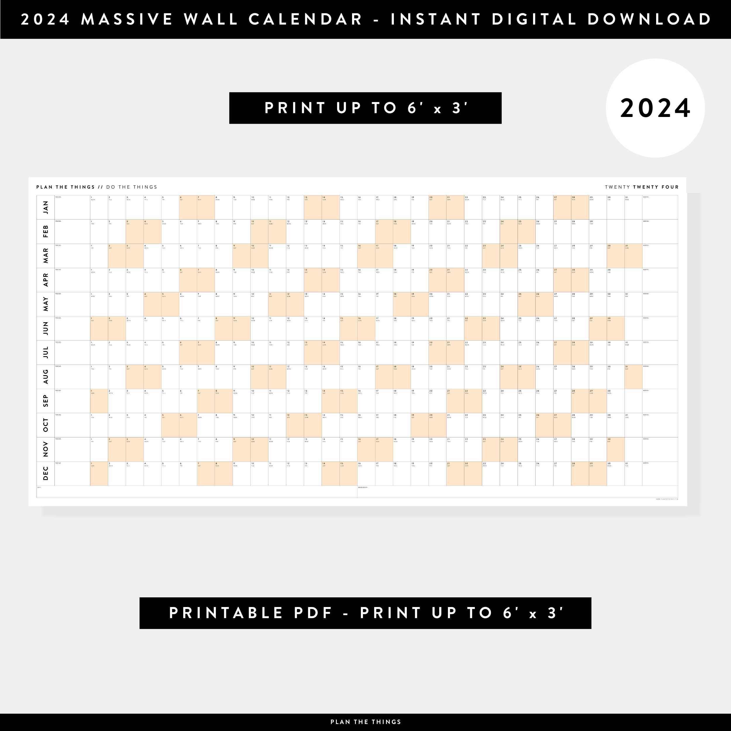 Source : www.etsy.comPRINTABLE 6′ x 3′ MASSIVE 2025 WALL CALENDAR WITH ORANGE WEEKENDS